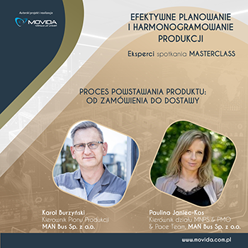 Podczas masterclass odbędzie się techniczne zwiedzanie nowoczesnego zakładu MAN Bus w Starachowicach – jedynego w Polsce producenta autobusów miejskich z w pełni zautomatyzowaną linią kataforezy. To niepowtarzalna okazja, by zobaczyć cyfryzację, automatyzację, planowanie i zarządzanie produkcją w praktyce, w jednym z najbardziej zaawansowanych zakładów automotive.